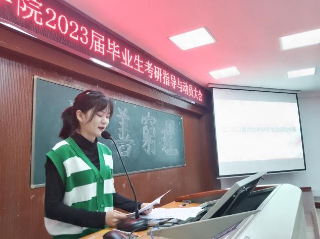 会上,副经理邹志军仔细分析了2022年考研国家线与学院2022年考研基本情况,总结部分同学未上线的原因,为同学们提供了很有价值的参考。通过对比学硕与专硕,他强调择校择专业的正确原则:正确地为报考专业定位。报考专业时应从自身实际出发,准确为自己定位,尽可能保证被第一志愿录取。他还向大家介绍了中国研究生招生信息网,讲授针对各科目考研课程的学习侧重点与方法。